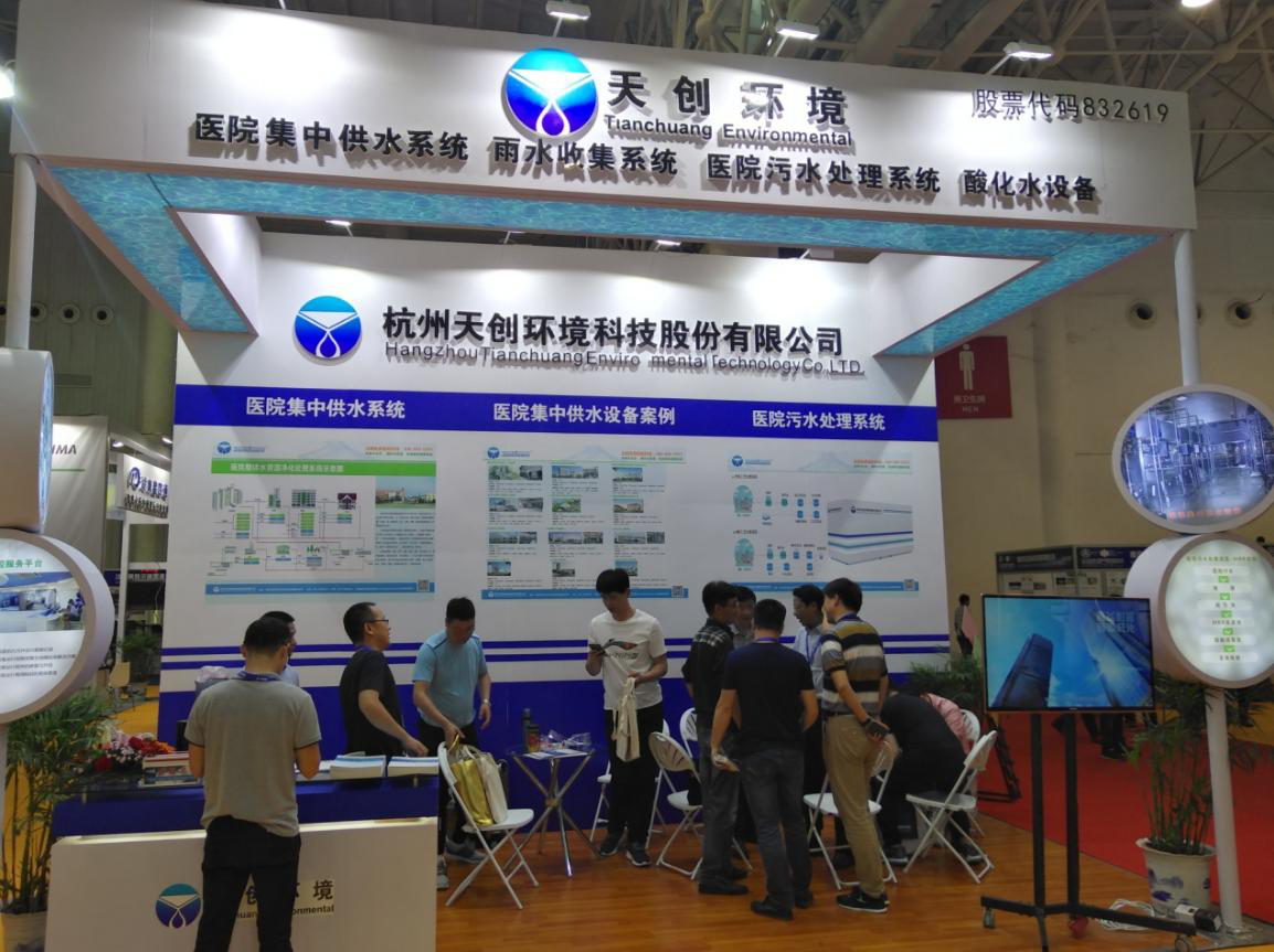 近日,CHCC2018第19届全国医院建设大会暨中国国际医院建设、装备及管理展览会于武汉国际博览中心圆满落幕,杭州天创环境科技股份有限公司作为医疗水资源循环利用综合解决方案的专业供应商,参与此次行业盛会。以现代医院建设和管理要求,结合公司独特优势,向参展嘉宾展示了全新的医院水资源净化整体解决方案:全院集中供纯水系统、MB一体化医疗污水处理系统、雨水收集系统和酸化水系统等,得到众多参会代表和厂家的关注、咨询,并获得一致好评。