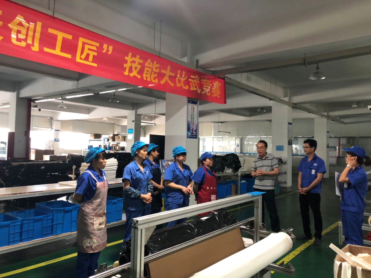 卷膜比赛是巾帼英雄们的会场,以一小时内以员工卷膜数量及质量做为衡量标准。随着天创总工程师薜总一声令下,女工们快速归位,熟悉地配合机器做好膜片的放置,用自已的心灵手巧诠释了卷膜技能工艺。比赛现场非常严肃,甚至有女工在卷第一只膜时就出现了差错,好在一会儿调整心态逐步趋入正常。